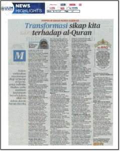 | Uncontrolled Keywords: | Inspirasi Kisah Nurly Sahirah / Transformasi Sikap Kita Terhadap Al-Quran penulisan Dr Syed Sultan Bee Pakeer Mohamed Pensyarah Kanan di Pusat Pengajian Bahasa, Tamadun dan Falsafah Universiti Utara Malaysia |