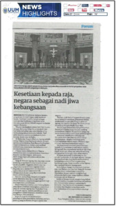 | Uncontrolled Keywords: | Forum / Kesetiaan Kepada Raja, Negara Sebagai Nadi Jiwa Kebangsaan penulisan Prof. Madya Dr. Mohamed Ali Haniffa pensyarah Pusat Pengajian Bahasa, Tamadun dan Falsafah, Universtiti Utara Malaysia (UUM) |