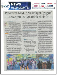 Mohd Udin, Mashitah (2025) Program MADANI Rakyat 'Gegar' Kelantan, Bukti Tidak Disisih. (8 August 2025). in Berita Harian, Bangsar, Kuala Lumpur, p. p. 11. (In Press)