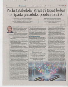 Sakdan, Mohd Fo'ad (2025) Perlu Tatakelola, Strategi Tepat Bebas Daripada Paradoks Produktiviti AI. (20 August 2025). in Berita Harian, Bangsar, Kuala Lumpur, p. p. 12. (In Press)