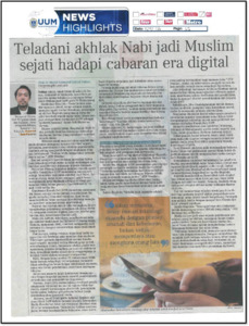 Sairan, Mohd Ammyrul Ashraf (2025) Teladani Akhlak Nabi Jadi Muslim Sejati Hadapi Cabaran Era Digital. (5 September 2025). in Berita Harian, Bangsar, Kuala Lumpur, p. p. 22. (In Press)