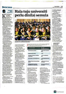 Md Dahlan, Nuarrual Hilal (2025) Hala Tuju Universiti Perlu Dinilai Semula. (15 October 2025). in Media Mulia Sdn. Bhd, Utusan Malaysia, Petaling Jaya, Selangor, p. p. 13.