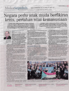 Sakdan, Mohd Foad (2025) Negara Perlu Anak Muda Berfikiran Kritis, Pertahan Nilai Kemanusiaan. (16 October 2025). in Berita Harian, Bangsar, Kuala Lumpur, p. p. 10. (In Press)