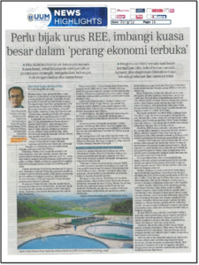 Mat, Bakri (2025) Perlu Bijak Urus REE, Imbangi Kuasa Besar Dalam 'Perang Ekonomi Terbuka'. (25 October 2025). in Berita Harian, Bangsar, Kuala Lumpur, p. p. 12. (In Press)