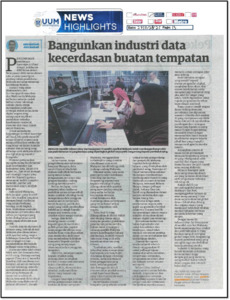 | Uncontrolled Keywords: | Rencana / Bangunkan Industri Data Kecerdasan Buatan Tempatan penulisan Dr Abu Sufian Abu Bakar, Pensyarah Kanan di Pusat Pengajian Ekonomi Kewangan dan Perbankan, Universiti Utara Malaysia dan Timbalan Pengerusi Forum Ekonomi Manusiawi |