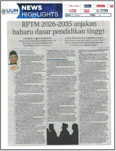 | Uncontrolled Keywords: | Rencana / RPTM 2026-2035 Anjakan Baharu Dasar Pendidikan Tinggi penulisan Prof Dr Ahmad Martadha Mohamed Naib Canselor Universiti Utara Malaysia |