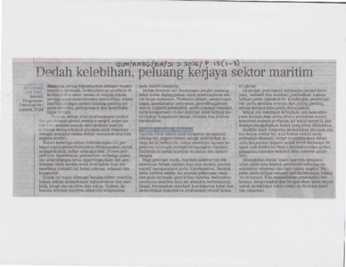 | Uncontrolled Keywords: | Minda Pembaca/Dedah Kelebihan, Peluang Kerjaya Sektor Maritim penulisan Dr Chuah Lai Fatt pensyarah Pusat Pengajian Pengurusan Teknologi dan Logistik, Universiti Utara Malaysia |